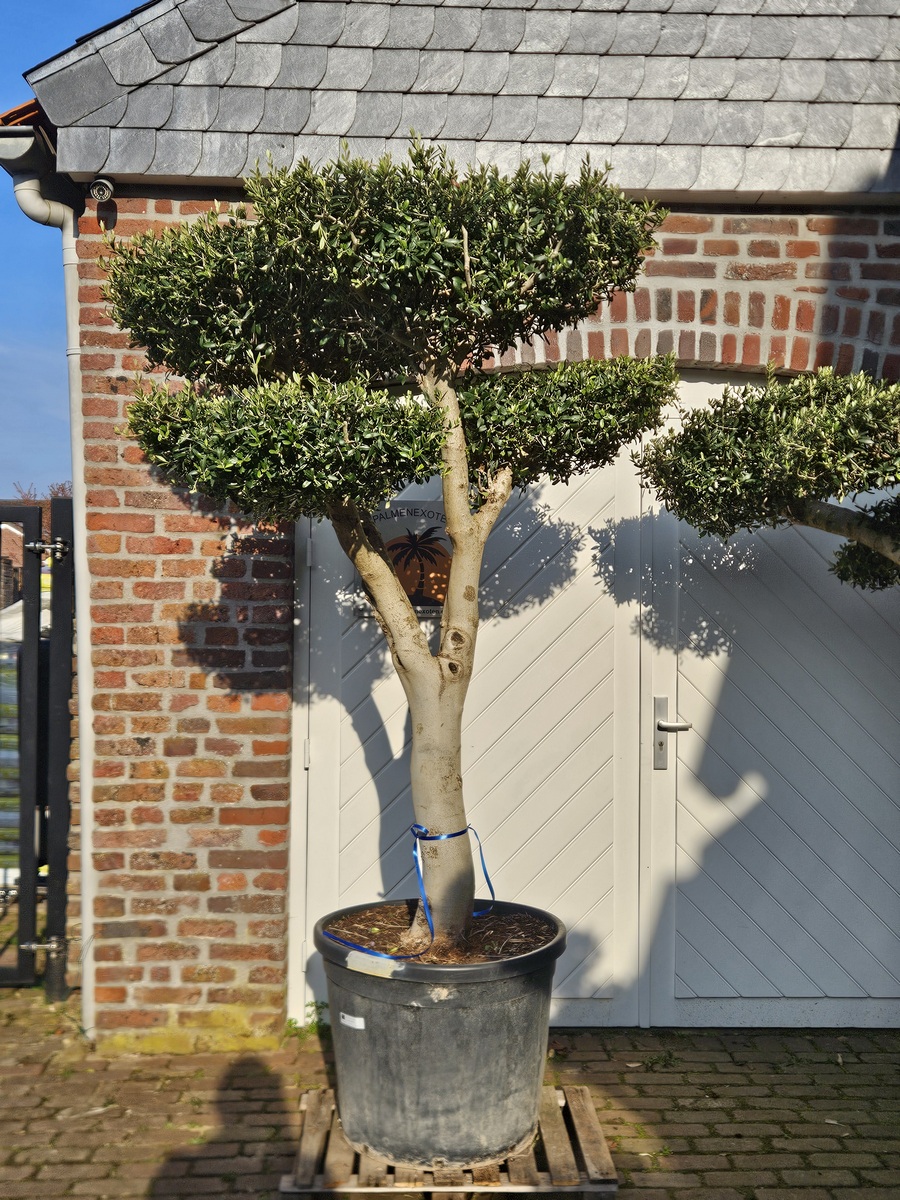 De Olea Europaea Platoo 01 is een karaktervolle olijfboom met een prachtige mediterrane uitstraling. Deze boom wordt geleverd in een 130 liter pot met een potdiameter van 65 cm, een stamomtrek van 50 tot 60 cm en een totale hoogte inclusief pot van circa 255 cm. Een indrukwekkende blikvanger voor tuin, terras of patio.